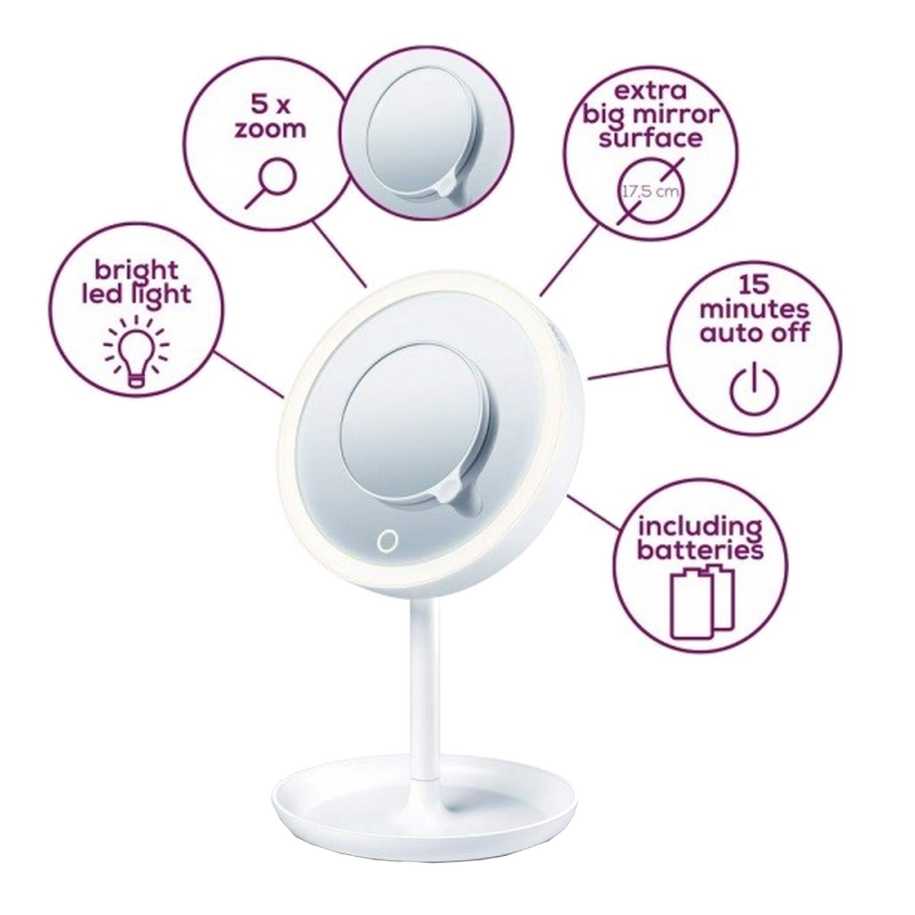 Kosmētiskais spogulis ar gaismu ir lieliski piemērots lietošanai jūsu vannas istabā, jo tam ir īpaši liela spoguļa virsma ar palielinājuma efektu