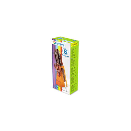 Komplektā 8 piederumi: nažu turētājs, šefpavāra nazis, atkaulošanas nazis, universālais nazis, maizes nazis, dārzeņu nazis un virtuves šķēres, asinātājs Ergonomisks dizains Materiāls: augstas kvalitātes nerūsējošais tērauds Profesionāli noasināti Ar ērtu rokturi