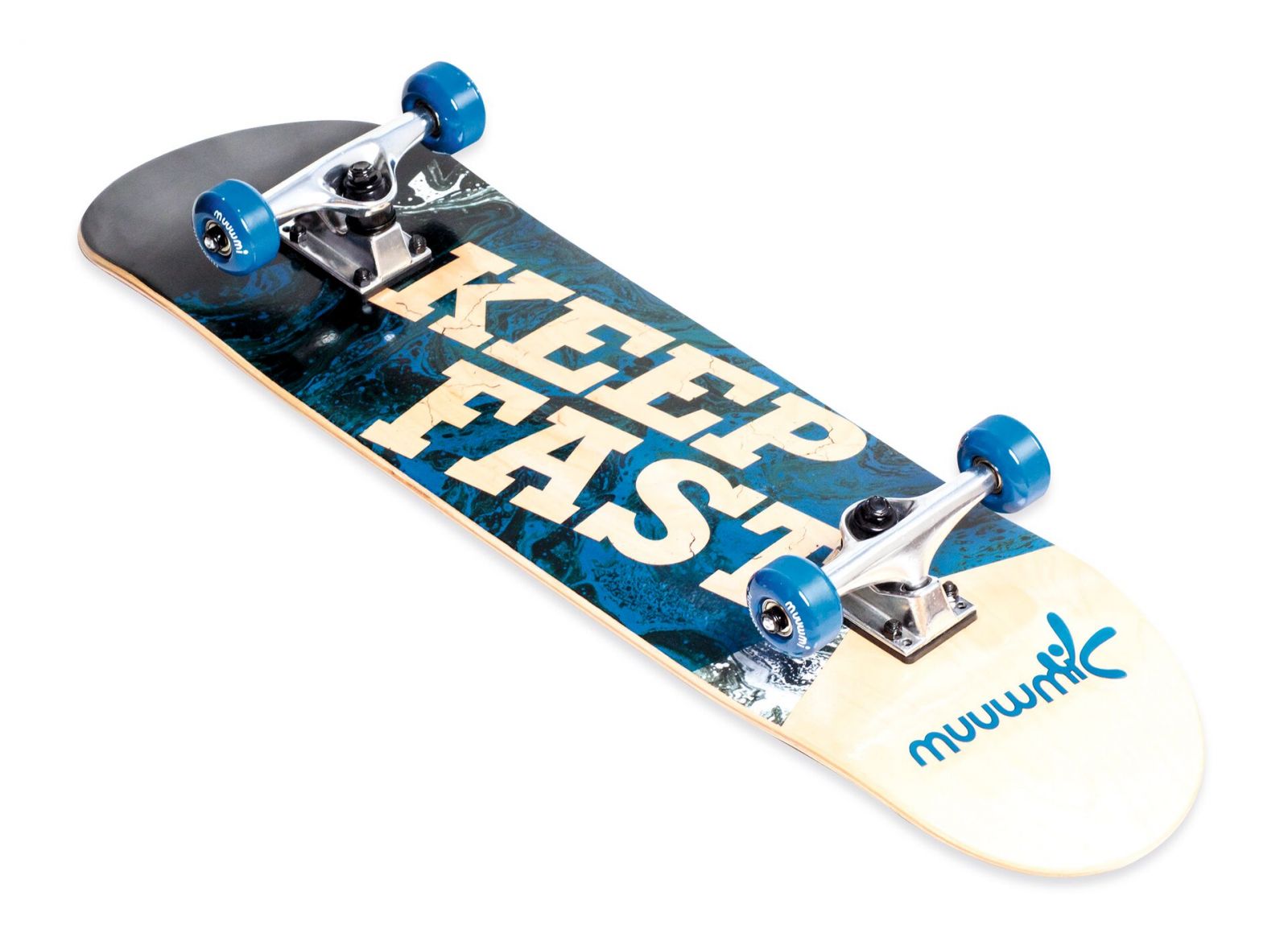 Skeitbords izgatavots no augstas kvalitātes 9-kārtīgas kļavas koka, komplektācijā pārnēsāšanas soma. Viļņu dizains. Neslīdoša roktura lente ar logotipa apdruku. Mugursoma izgatavota no neilona materiāla, regulējama plecu siksna ar 5 kabatām.