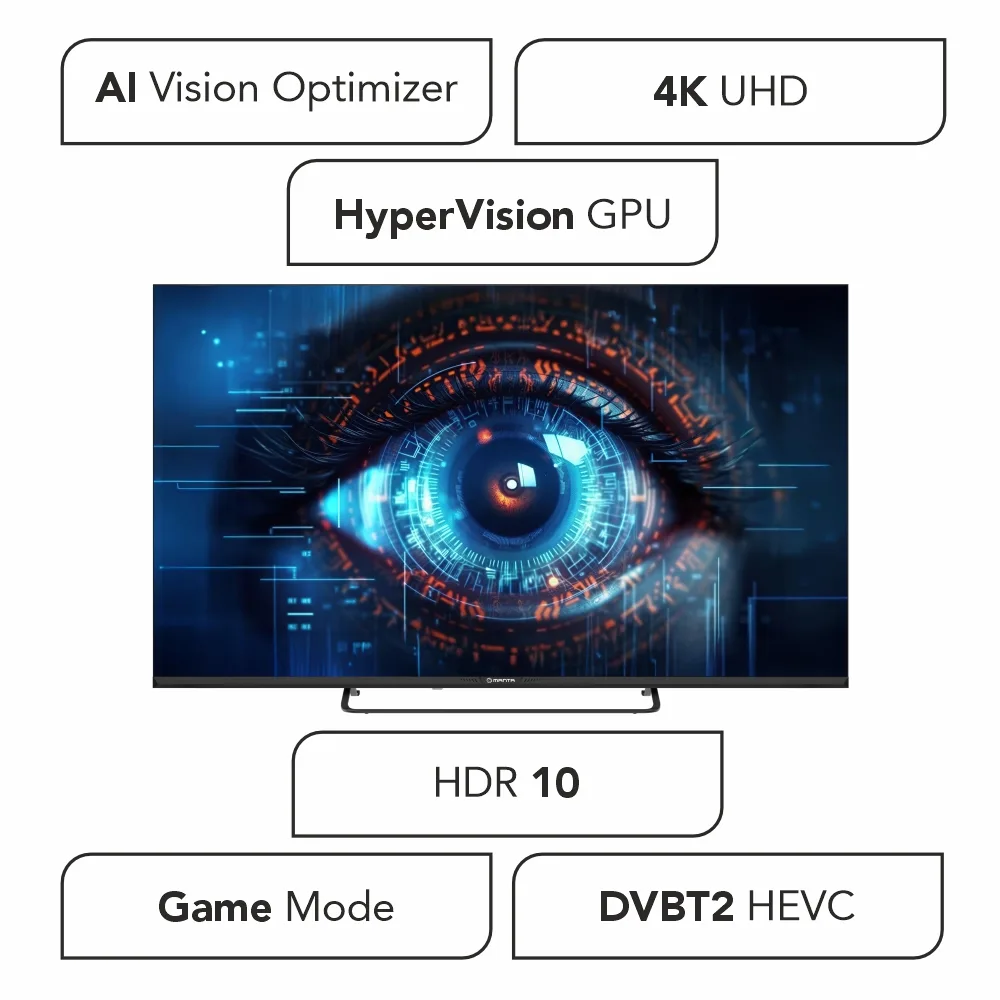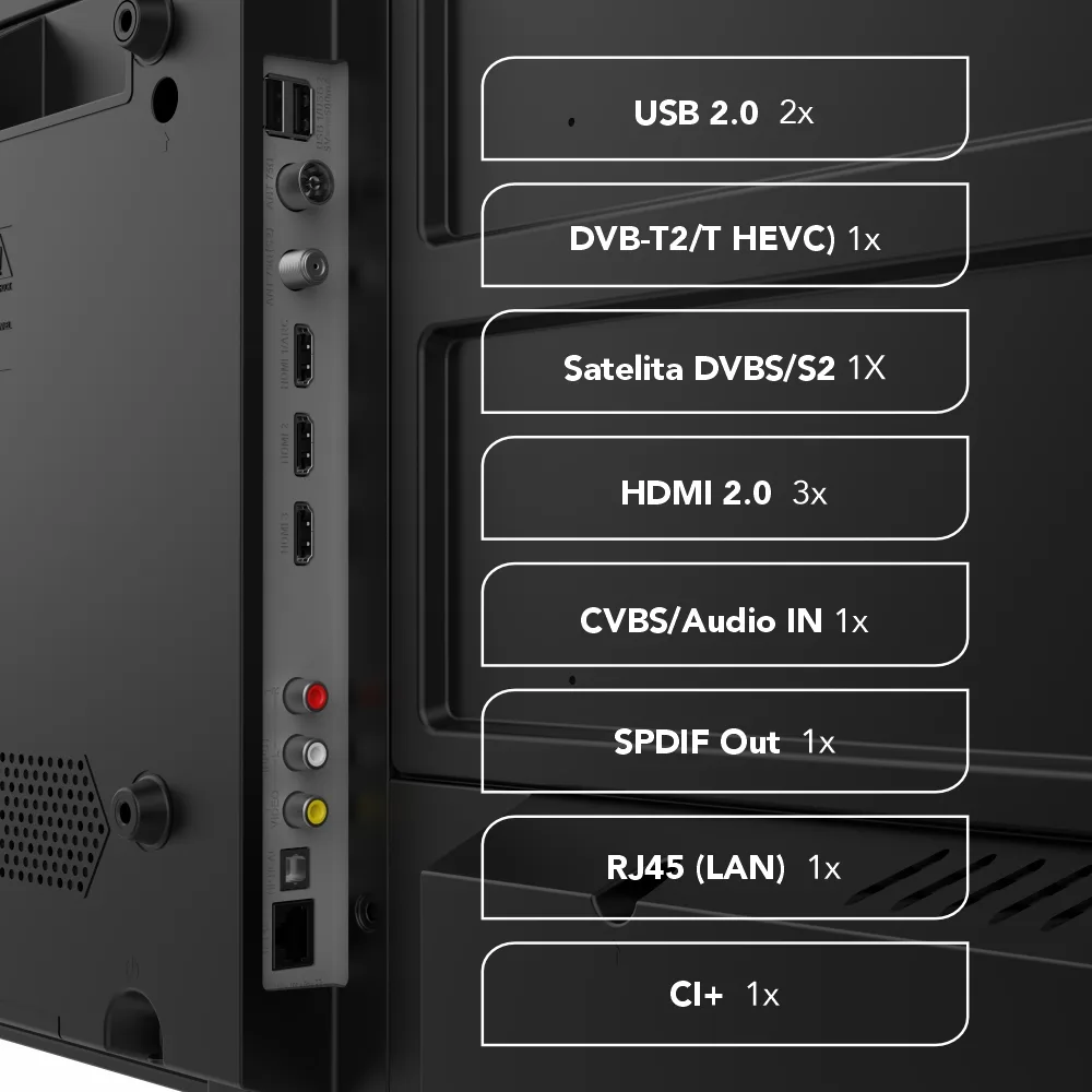 Tas izmanto VA (Vertical Alignment) LED paneli ar 4K UHD izšķirtspēju.