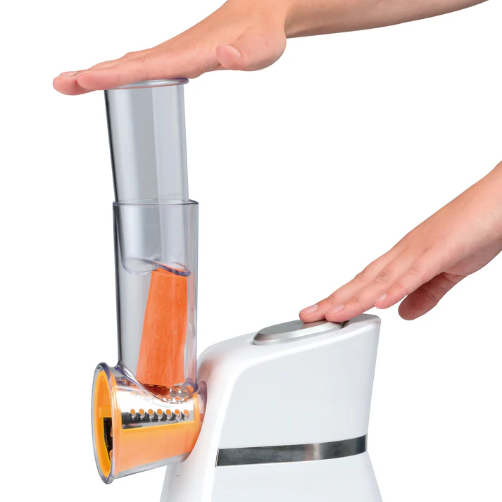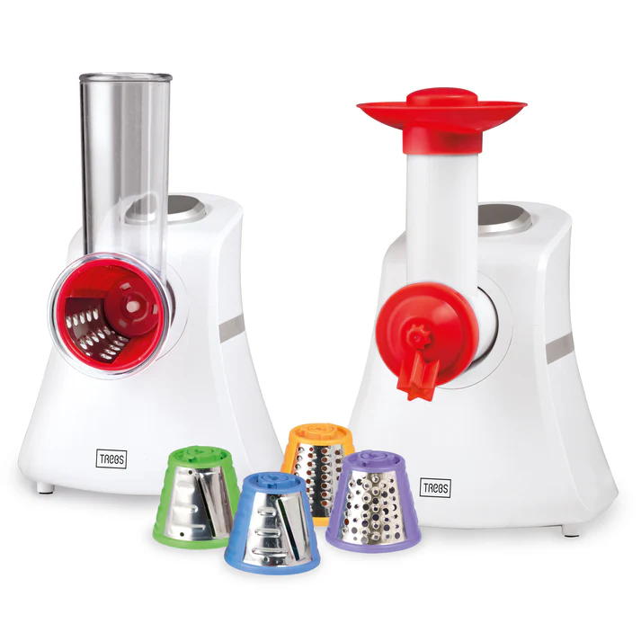 Trebs dārzeņu griezējs ir daudzfunkcionāls un kompakts virtuves kombains, kuram nevajadzētu pietrūkt jūsu virtuvē. Ierīce var sagriezt dārzeņus piecos veidos un pagatavot gardu svaigu sorbetu vai jogurta saldējumu.