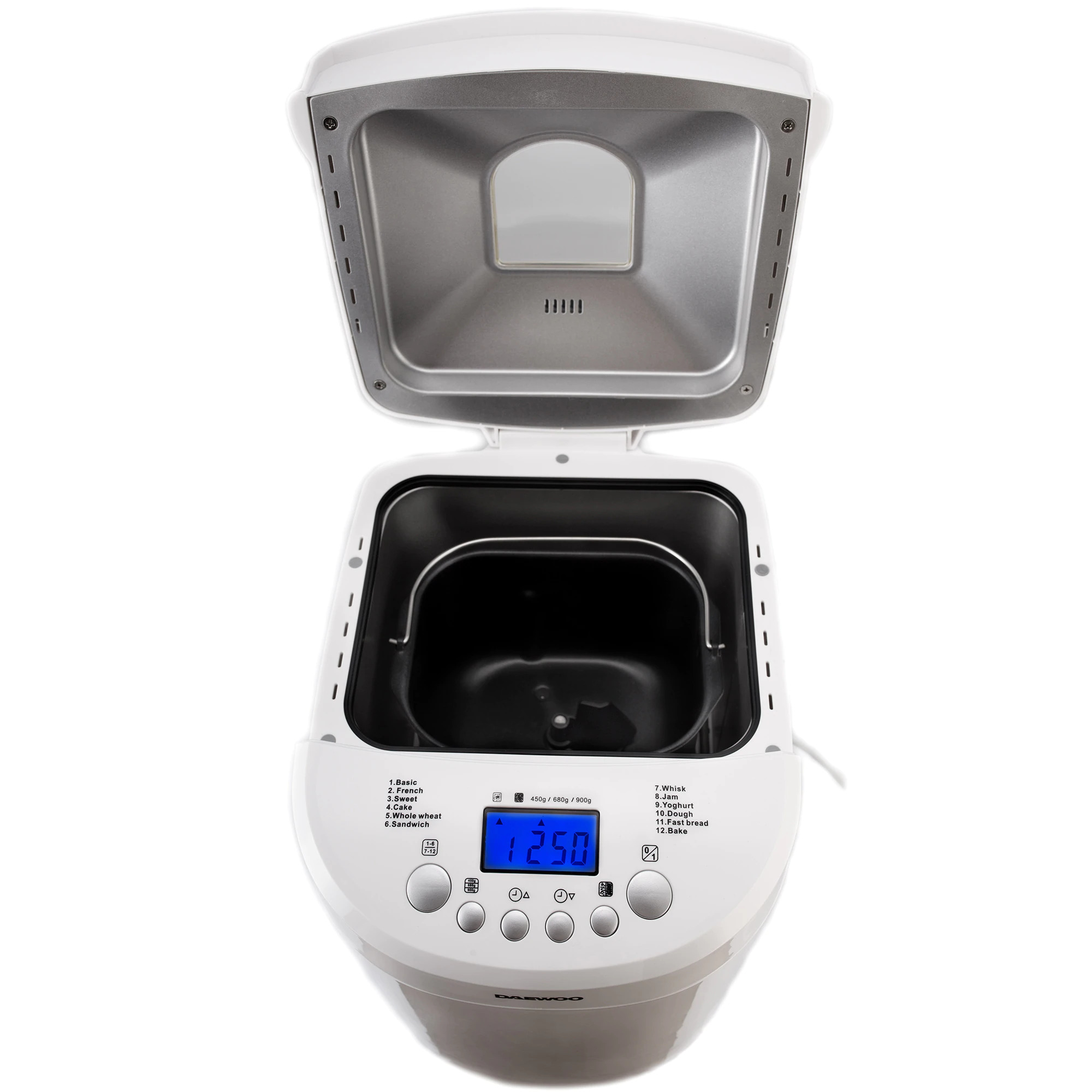 Maizes krāsns Daewoo DBM 600W, 600W, 900 g, 2 apbrūnināšanas līmeņi, 12 programmas, taimeris, balta. Ergonomisks dizains. Ir svarīgi, lai maizes cepšanas ierīce papildus galvenajai funkcijai – maizes cepšanai – spētu veikt pēc iespējas vairāk funkciju. 12 programmas: pamata, franču maize, saldā maize, cepumu mīkla, pilngraudu maize, sendvičs, tradicionālā mīkla, ievārījums, jogurts, mīkla, ātrā cepšana, garoza. Ierīce darbojas ar 600 W jaudu, kas ir pietiekama vēlamās veiktspējas nodrošināšanai. Ja neizņemsiet maizi uzreiz pēc cepšanas beigām, ierīce automātiski uzturēs to siltu 1 stundu. Apgaismots LCD displejs. Ar ietilpību līdz 900 g maizes cepšanas ierīce ir ideāla, jo nav nepieciešams atkārtot procesu vairākas reizes. Viegli programmējams taimeris.