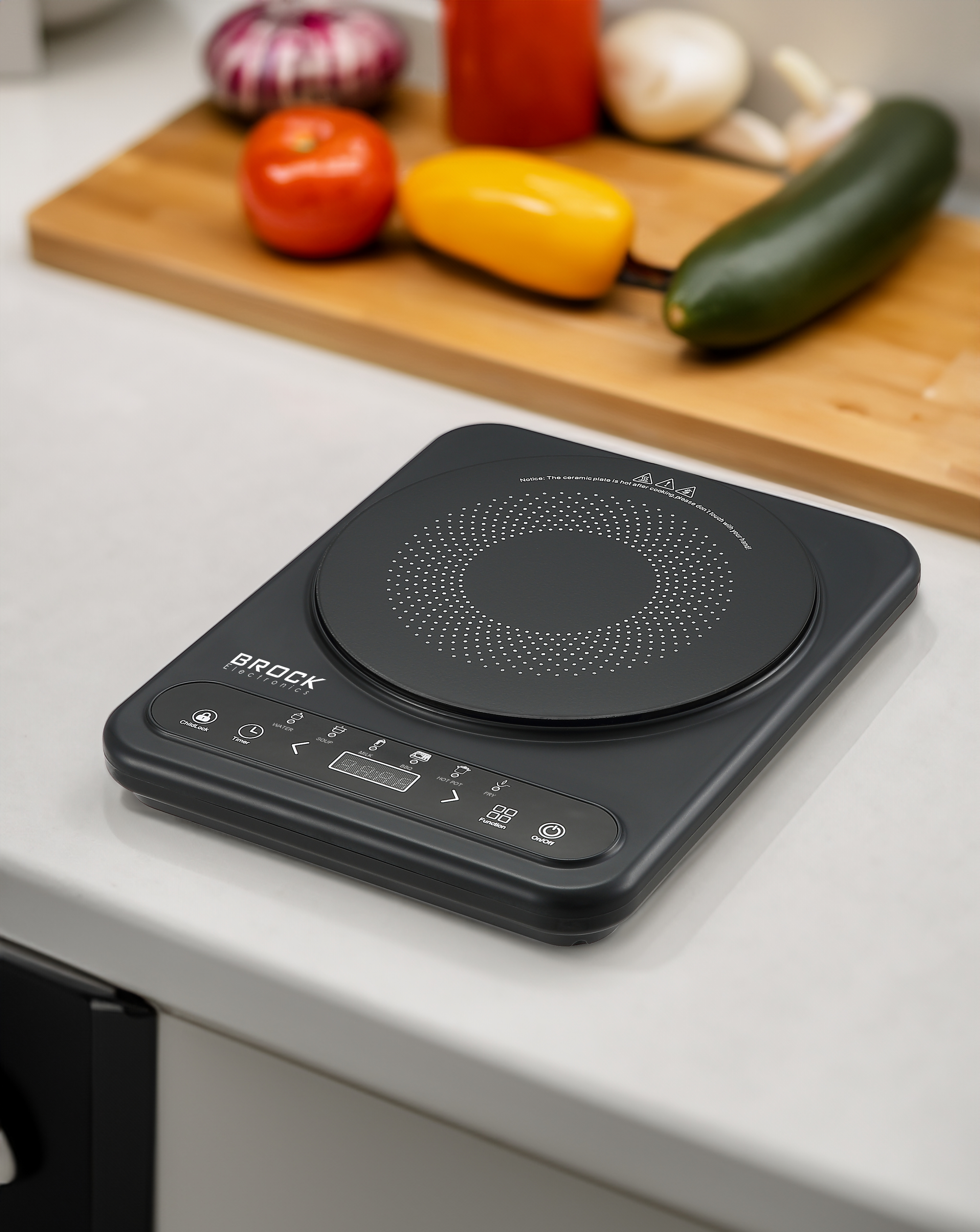 Indukcijas plīts, 2000W. Gatavošanas virsma: keramika, 250*250mm. Piemērota gatavošanas zona: katla pamatnes diametrs 12-20cm. 8 gatavošanas temperatūras līmeņi - 80 - 270 ℃. 8 gatavošanas jaudas līmeņi - 200 - 2000W. Displejs parāda gatavošanas temperatūru, jaudu, taimeri. 5 īpaši izstrādātas gatavošanas funkcijas: cept/vārīt/ūdens/sautēt/uzsildīt. Pogu vadības panelis ar digitālo displeju.
