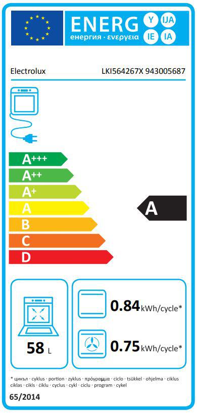 Elektrības patēriņš, kWh/ciklā: 0.84