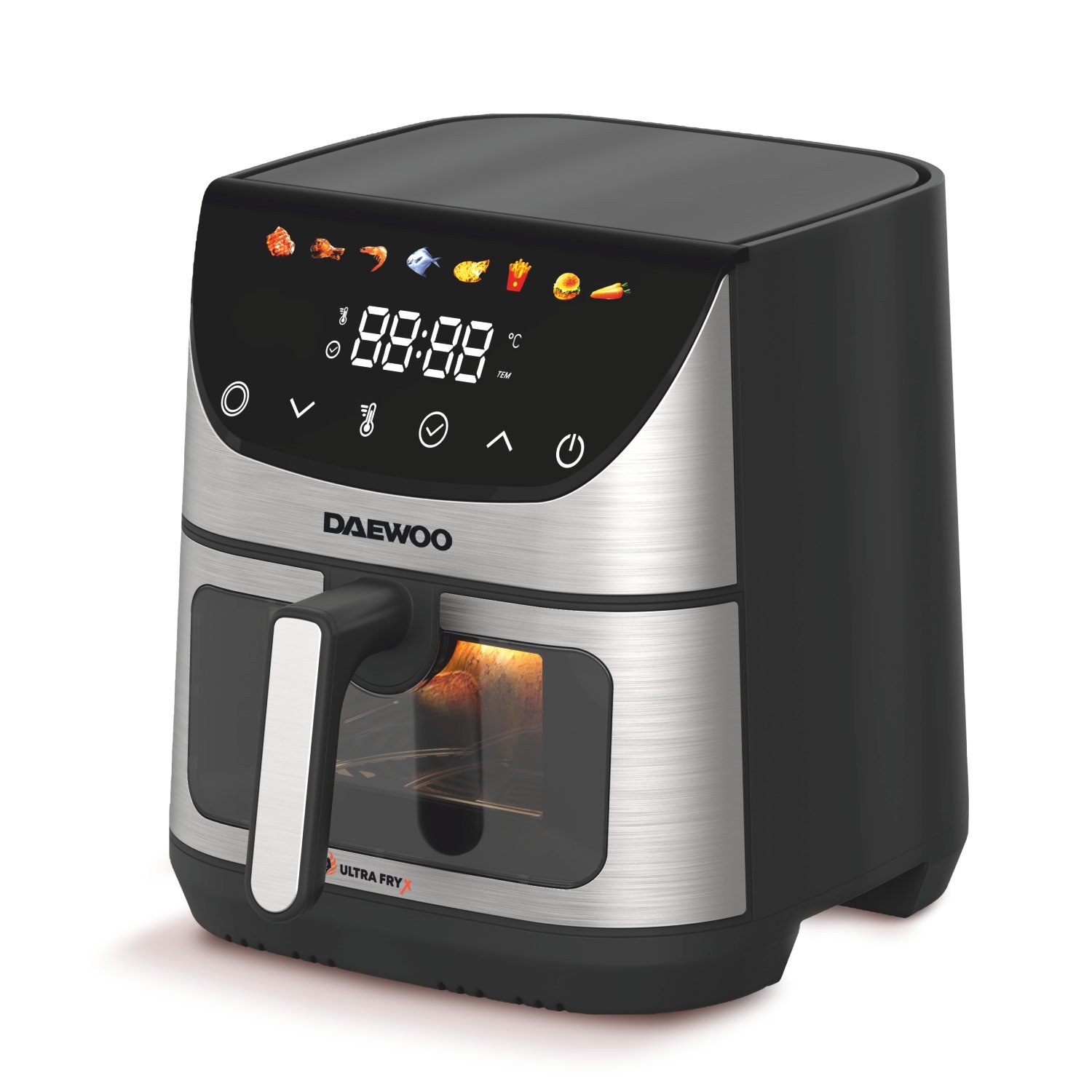 Daewoo karstā gaisa friteris, 1600 W, LED displejs, 6,5 L, taimeris, 8 iepriekš iestatītas programmas, regulējama temperatūra 80–200°C, melns, DAF 1600IX. Regulējama temperatūra no 80°C līdz 200°C, ietilpīga 6,5 L tvertne un 1600 W jauda. Aizmirstiet par temperatūras un gatavošanas laika minēšanu! Daewoo karstā gaisa fritieris ir aprīkots ar 8 iepriekš iestatītām gatavošanas programmām, kas pieejamas ar vienu pieskārienu, nodrošinot ātru un bezrūpīgu gatavošanu. Šie viedie iestatījumi ir optimizēti, lai katru reizi nodrošinātu lieliskus rezultātus populārākajiem ēdieniem, piemēram, gaļai, frī kartupeļiem, vistas gaļai, saldētiem produktiem, zivīm, picai, burgeriem un dārzeņiem, visu vadot ar digitālo LED displeju.