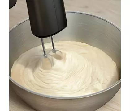 Relaksējieties un izbaudiet cepšanu. Šis rokas mikseris “divi vienā” dažās minūtēs sajauc vai samīca pat stingrākas mīklas. Piekļūstiet katrai vietai arī dziļākos traukos, samaziniet šļakatu apjomu un tīrīšanas laiku, pateicoties ierīces pagarinātajai konstrukcijai un funkcijai Soft Start.