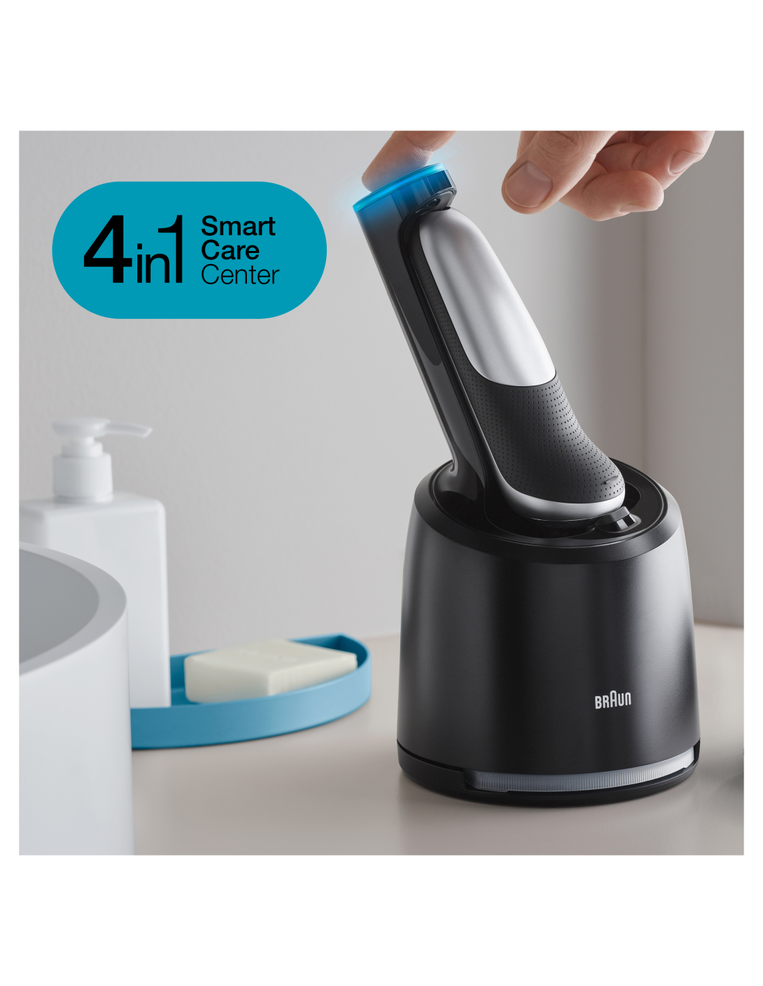 “Braun” 7. sērijas 7-S7200cc elektriskais skuveklis ar “SmartCare Center”, precīzs trimmeris, slapjai un sausai skūšanai, uzlādējams, bezvadu skuveklis ar sietiņu, sudraba krāsā