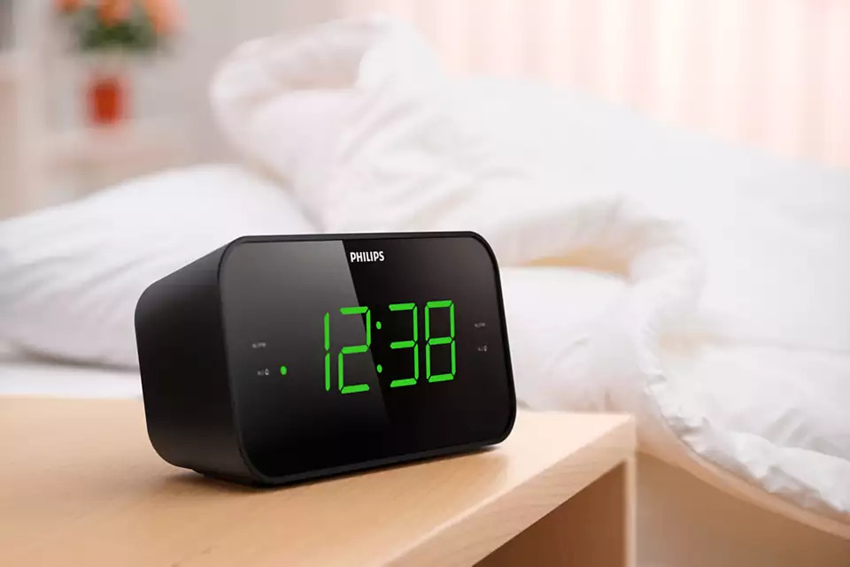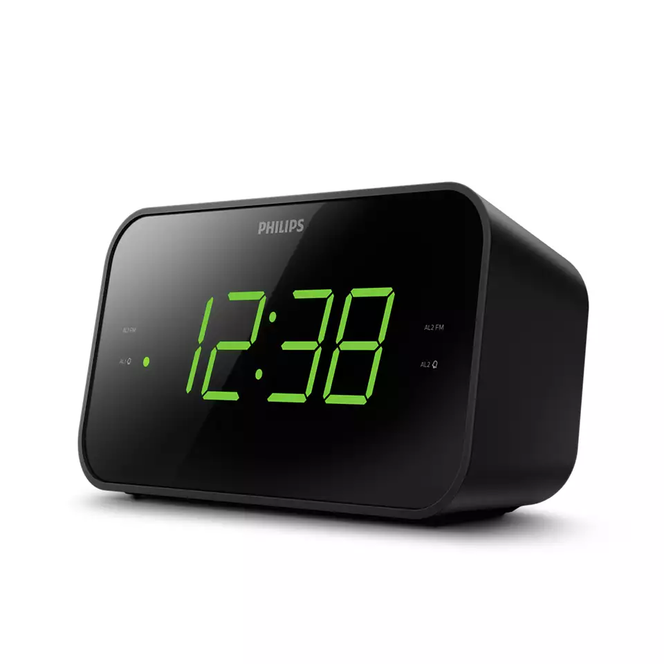 Mostieties iecienītās radiostacijas pavadījumā vai ar modinātāja signālu, izmantojot šo kompakto radio pulksteni. Saudzīgi pieaugošais signāla skaļums palīdz uzsākt dienu un izslēgšanās taimeris palīdz ieslīgt miegā, dodoties gulēt. Lielais displejs ļauj viegli nolasīt laiku.