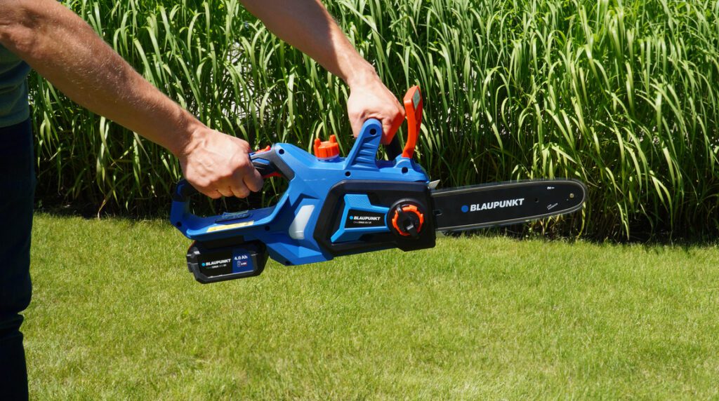 Drošība tiek nodrošināta ar automātisko ķēdes bremzi un nejaušas palaišanas bloķēšanu. Tam ir 25 cm vadotnes garums, un tas ir saderīgs ar Blaupunkt One DNA 18V akumulatoriem (jāiegādājas atsevišķi).
