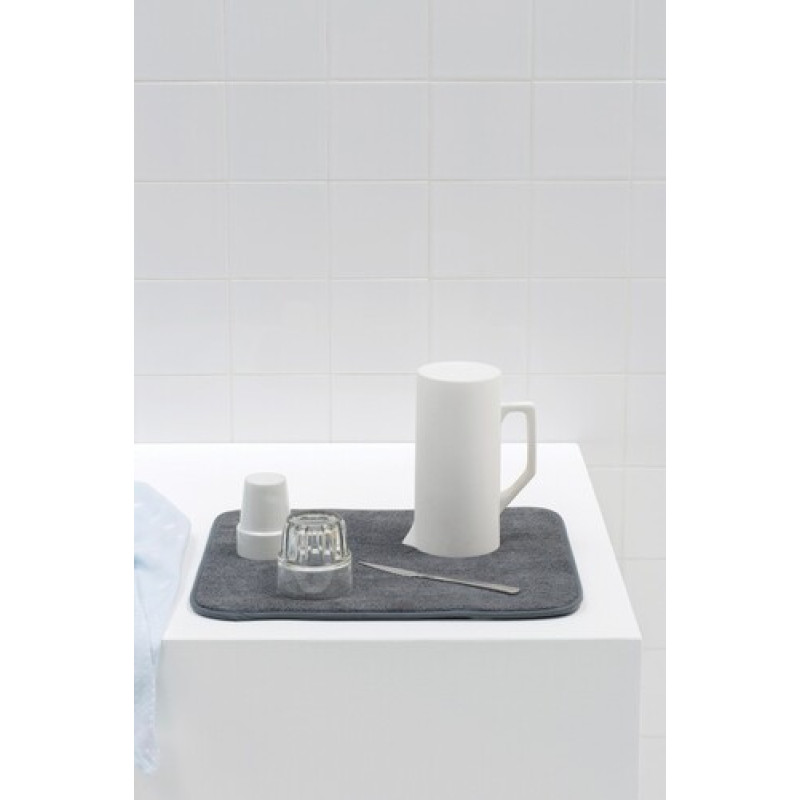 Izmantojiet Brabantia SinkSide mikrošķiedras trauku žāvēšanas paklājiņu! Šis salokāmais paklājiņš uzsūc ūdeni 7 reizes vairāk par savu svaru. Tas ir mīksta materiāla. Ļaujiet tam nožūt un salokiet vai vispirms ievietojiet veļas mašīnā.