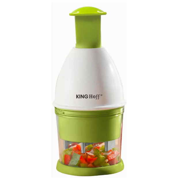 Dārzeņu smalcinātājs, 700ml, Kinghoff. Griešanas asmens izgatavots no augstas kvalitātes nerūsējošā tērauda. Ideāli piemērots augļu, dārzeņu, riekstu un garšaugu smalcināšanai. Virzuļa veida vertikālā darbība atvieglo lietošanu ar vienu roku. Viegli saliekams un izjaucams mazgāšanas ērtībai. Tvertnes tilpums: 700 ml. Instrumenta augstums: 22 cm. Konteinera augstums: 8,5 cm. Tvertnes diametrs: 10 cm.
