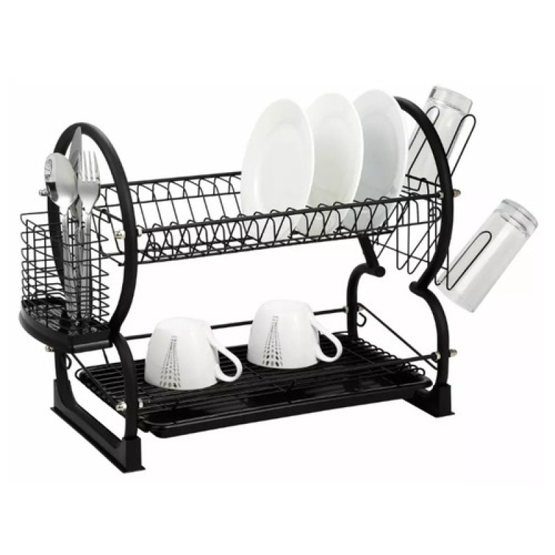 Trauku turētājs - metāla trauku žāvētājs no melnas stieples ar pretslīdes silikonu. Divu līmeņu