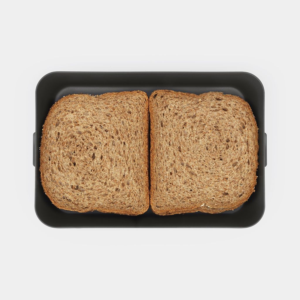 Brabantia Make & Take Lunch Box Large kastītei ir vāks ar klipšiem un vieta līdz pat 8 sviestmaizēm.