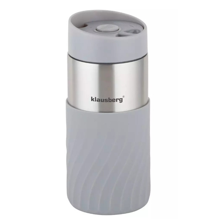 Termokrūze, pelēka, 300 ml Klausberg. Izgatavots no augstas kvalitātes nerūsējošā tērauda. Moderna dubultsienu konstrukcija labākai izolācijai. Ergonomiska apdare ar viļņainu rakstu drošai satvērienam. Ārējā virsma nesasilst, nodrošinot lietošanas komfortu. Efektīvi uztur temperatūru iekšpusē. Izturīgs pret triecieniem un bojājumiem. Tilpums: 300 ml.