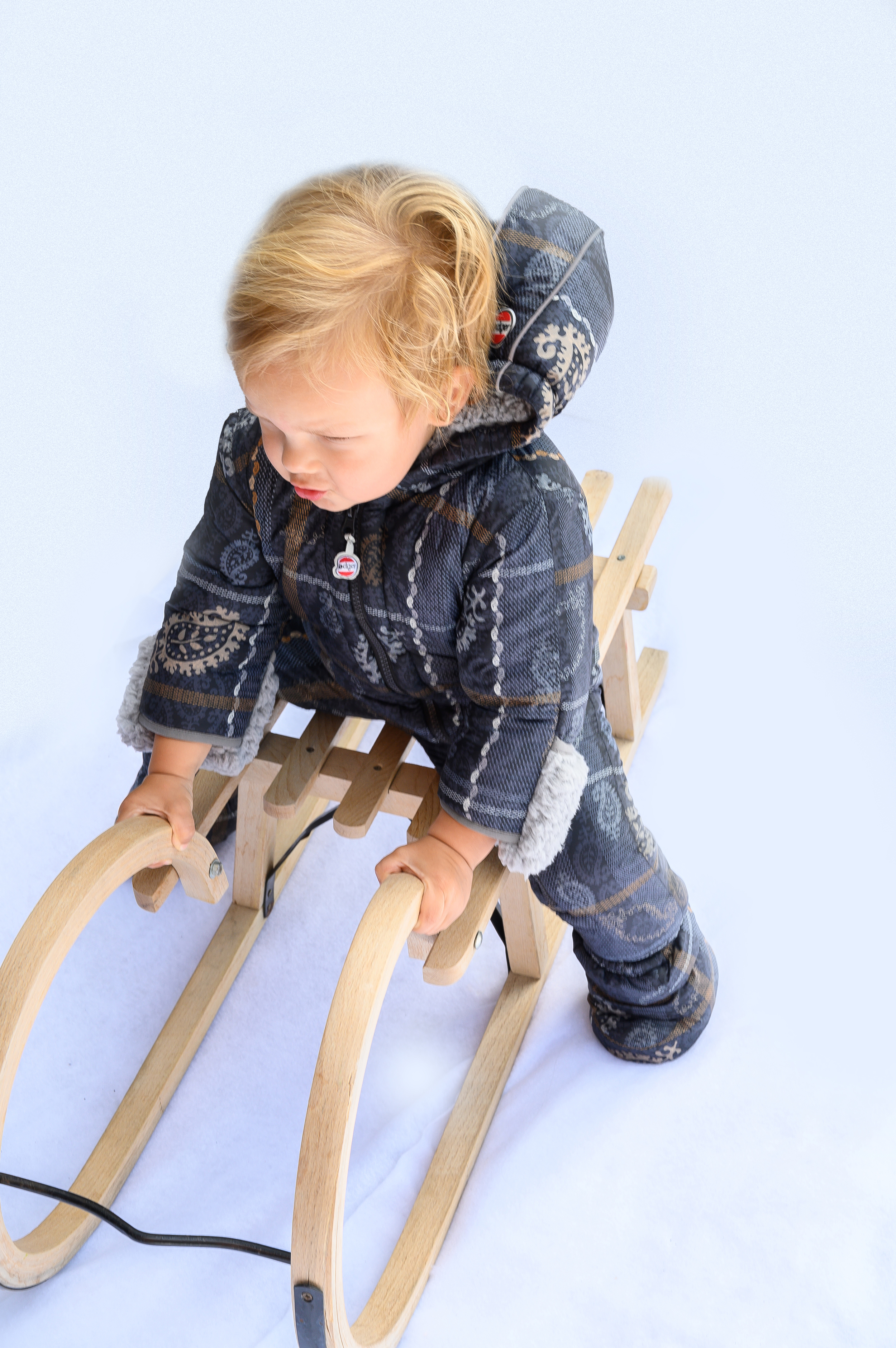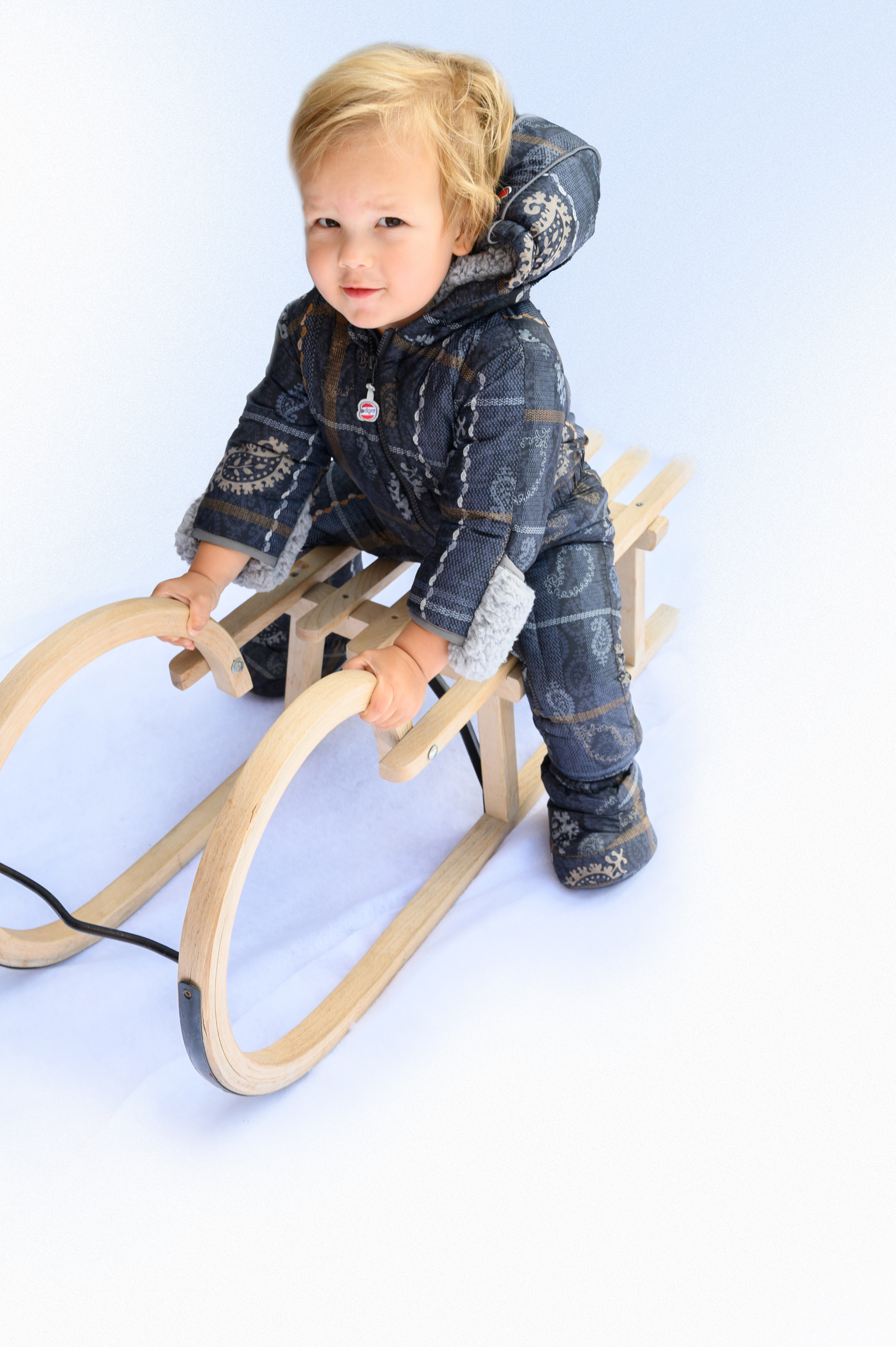 Kombinezonam ir rāvējslēdzējs no kakla daļas līdz kreisajai pēdai, padara vieglu un ērtu tā uzvilkšanu. Pateicoties elastīgajai joslai, kapuce aiztur vēju un perfekti pieguļ mazuļa galvai. Skier kombinezona modeļiem ar izmēriem 68cm un 74cm ir aizlokāmas rociņas un pēdiņas, lai nodrošinātu papildus komfortu un siltumu.