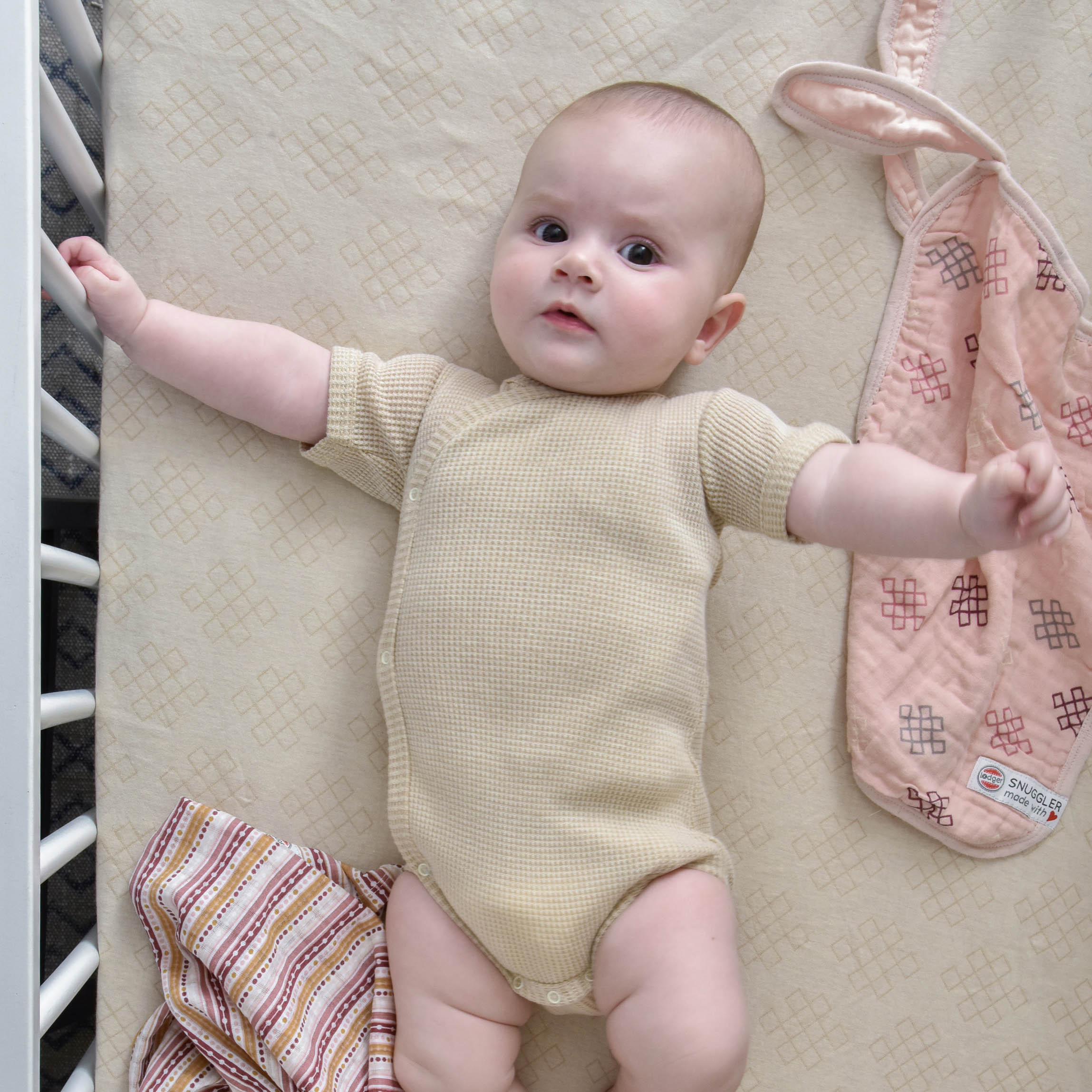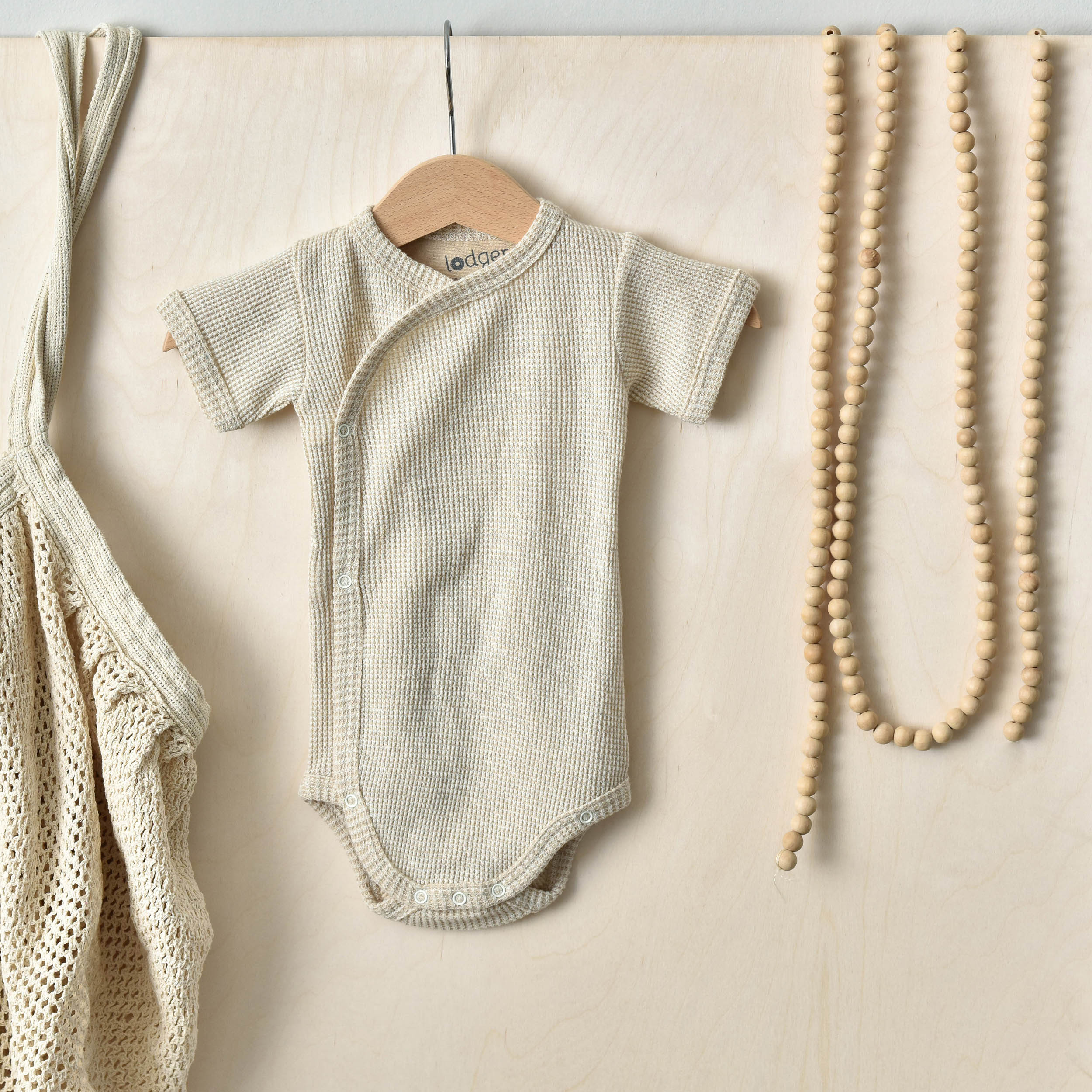 Ļaujiet savam mazulim kā topiņu vasarā nēsāt kokvilnas bodiju. Vai ļaujiet jūsu mazulim nēsāt kokvilnas bodiju ar vafeļu faktūru zem pidžamas, guļammaisā vai zem cita mazuļu apģērba. Pateicoties ērtajam apliekamajam dizainam un aizdarei ar spiedpogām apģērbt jūsu mazuli ir ļoti viegli. Jums nekas nav jāvelk pāri trauslajai mazuļa galvai. Tas padara bodiju ideāli piemērotu jaundzimušajiem.