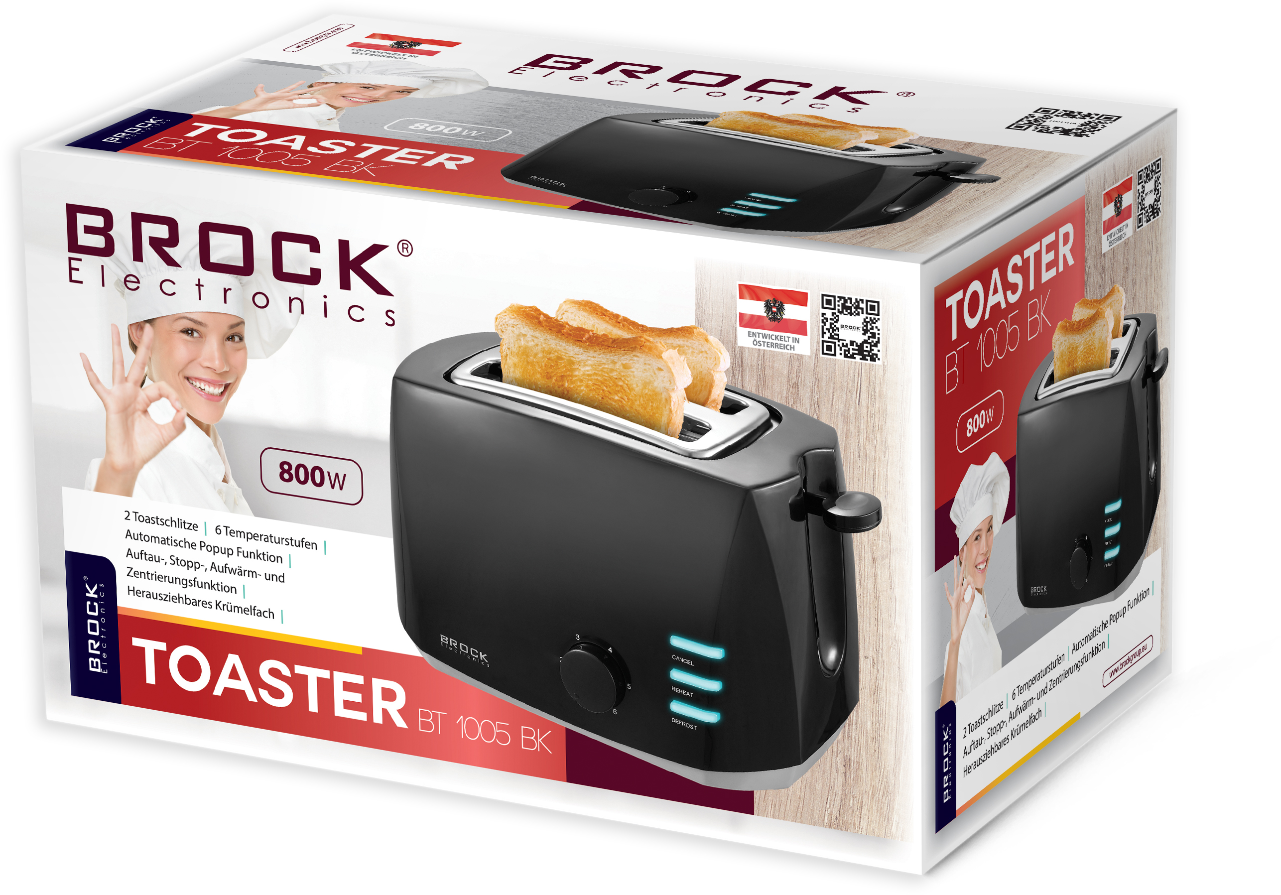 2 grauzdēšanas spraugas. 6 grauzdēšanas intensitātes pakāpes. Ieslēgšanas / izslēgšanas poga. Atsaldēšanas, atcelšanas, uzsildīšanas un centrēšanas funkcijas. Automātiska grauzdiņu pacelšanas funkcija. Noņemama drupaču paplāte. Jauda: 800W. Izmērs (garums x platums x augstums): 29.1x18.1x19 cm.