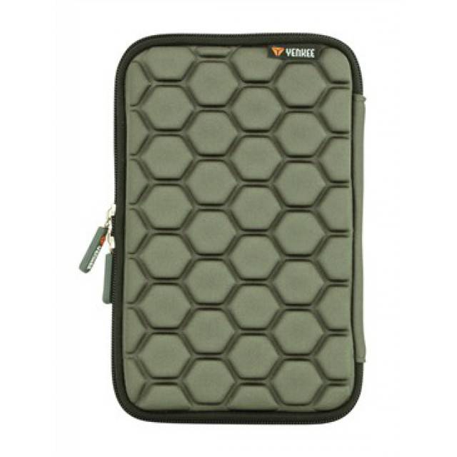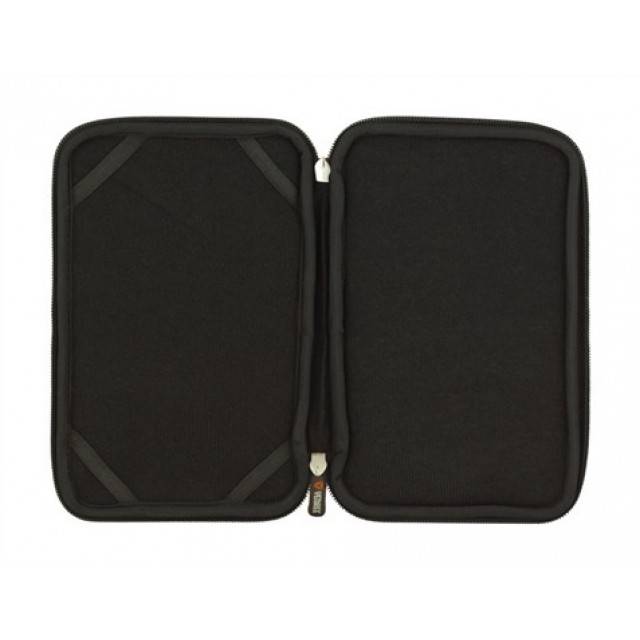 7 " planšetdatora soma. Reljefēts dizains, iekšējie planšetdatora klipši. Izmēri: 140x220 mm Ārējais materiāls: audums / putas Interjera materiāls: samts Krāsa: pelēka