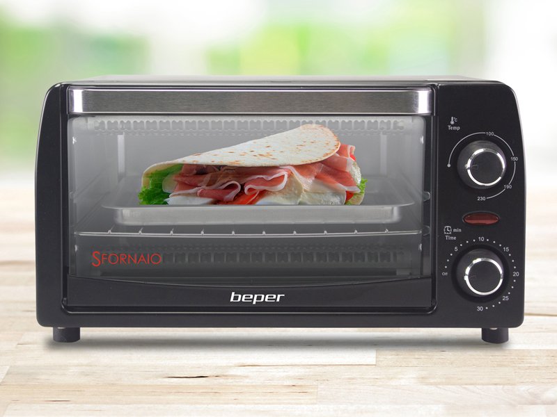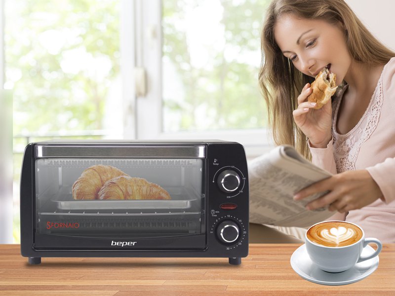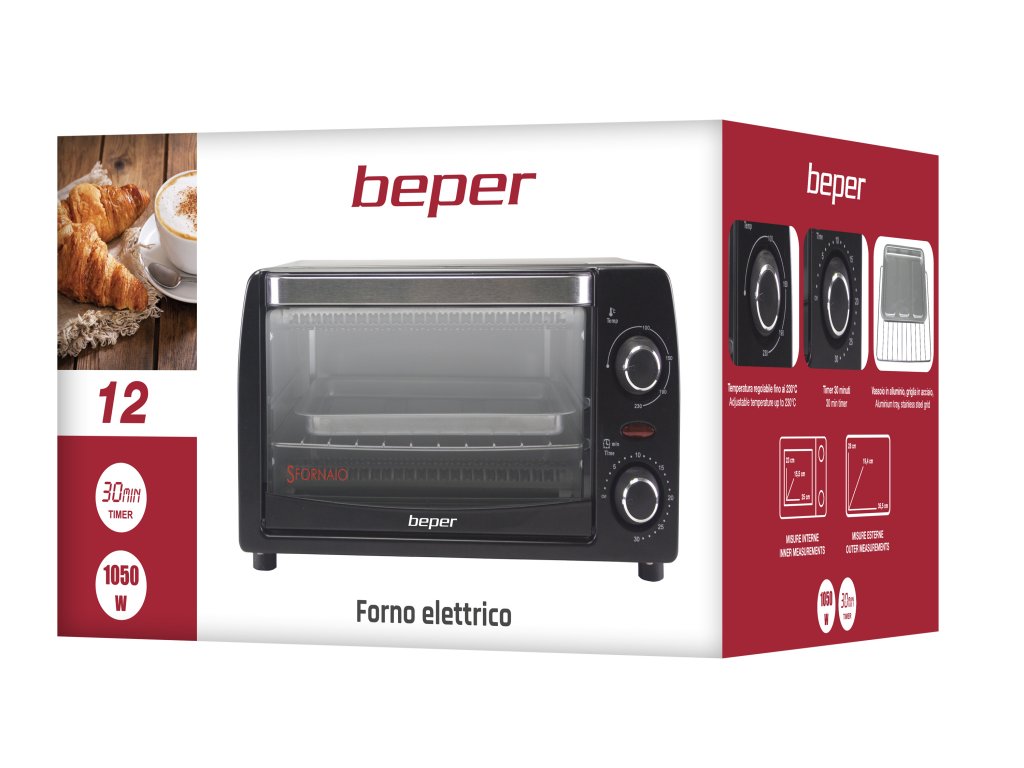 Superkompakta elektriskā cepeškrāsns ar 12L tilpumu un kvarca sildelementiem. Ar pogu temperatūras regulēšanai līdz 230°C un taimera iestatīšanu līdz 30 minūtēm ar zvanu un automātisko izslēgšanos. Tērauda režģis un alumīnija paplāte ir komplektā.