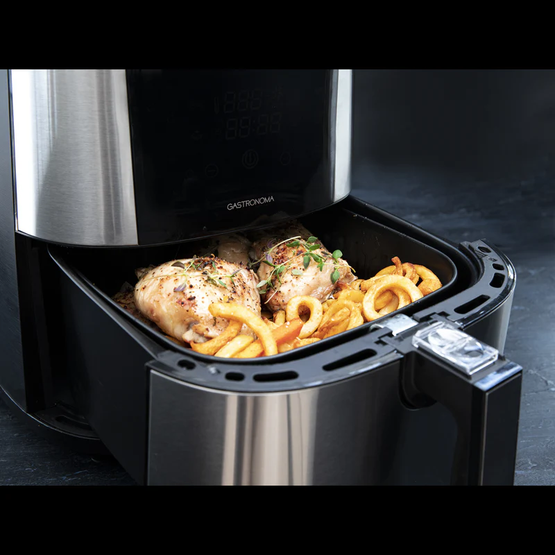 Pagatavojiet īsā laikā maltītes ar šo Gastronoma karstā gaisa friteri ietaupot gan laiku, gan enerģiju! Pagatavojiet ēdienu ar 80% mazāk eļļas salīdzinājumā ar tradicionālajiem eļļas friteriem. Katrā maltītes gatavošanas reizē pagatavojiet kraukšķīgus kartupeļus frī, sulīgu vistu un dārzeņus līdz pilnībai, pateicoties tam, ka ierīce uztur nemainīgu un stabilu temperatūru. Jūs varat arī atkausēt un uzsildīt pārtiku un pat cept mafinus.