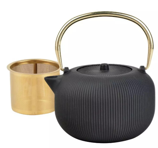Čuguna tējkanna ar sietiņu, emaljēta iekšpuse, 1 l, melna ar zelta rokturi, KING Hoff, KH 1931