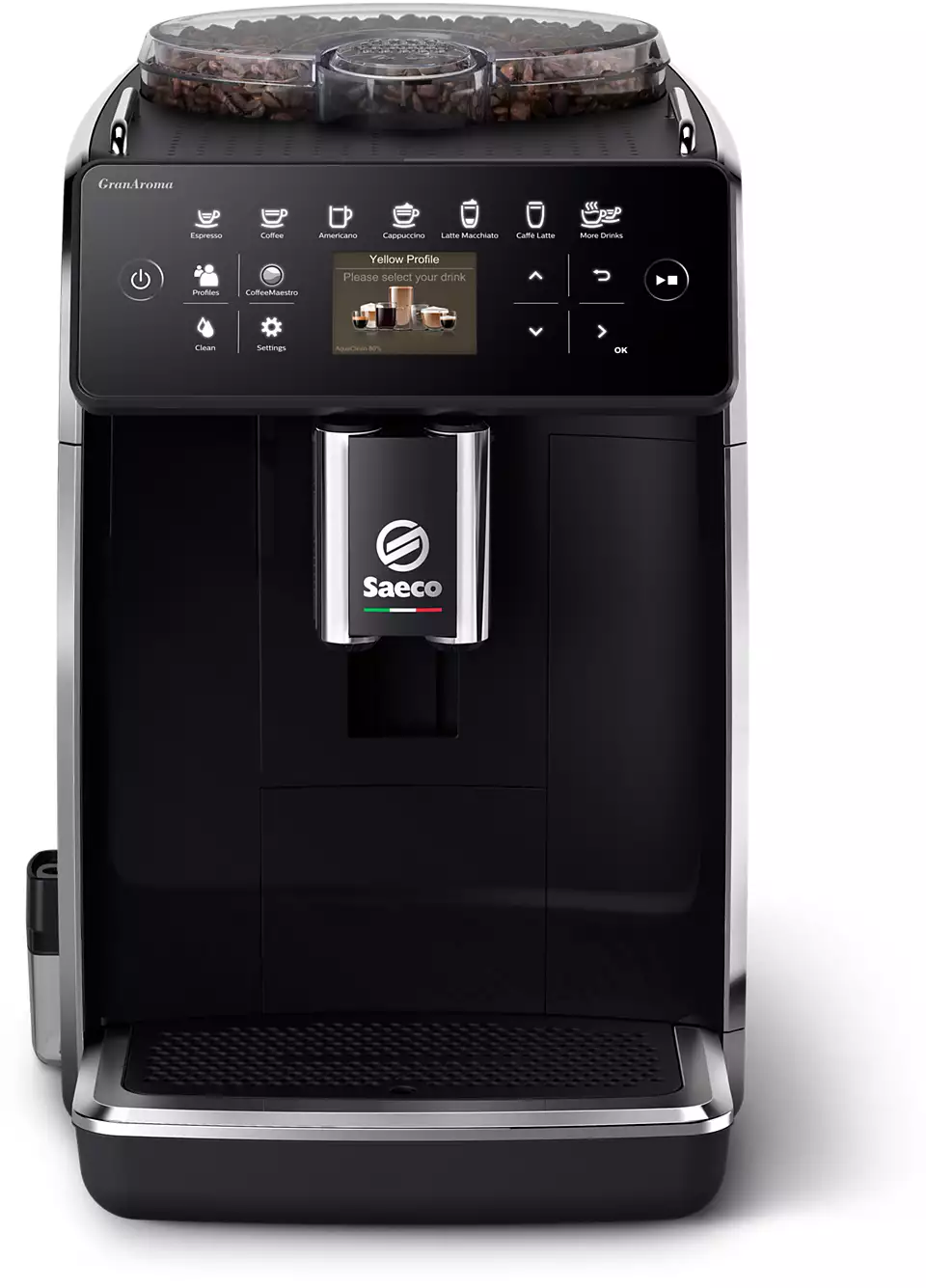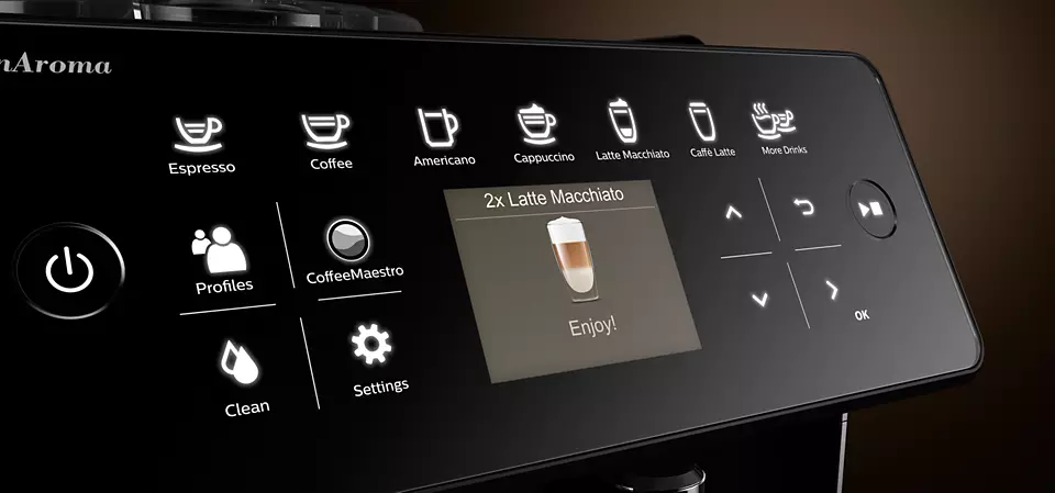 Intuitīvi personalizējiet aromātiskos kafijas dzērienus, piemēram, kapučīno un late makjato, izmantojot garšu profilus, kas pieejami CoffeeMaestro izvēlne, un baudiet zīdainas piena putas ar mūsu ārējo piena karafi — pat tad, ja vienlaikus gatavojat divus piena dzērienus.
