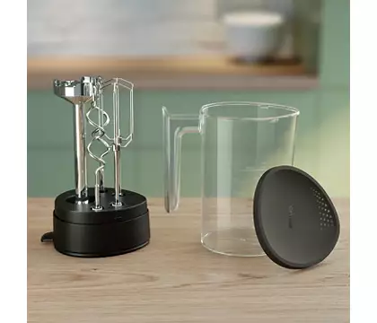 Šis rokas mikseris “trīs vienā” dažās minūtēs sajauc vai samīca pat stingrākas mīklas. Samaziniet šļakatu apjomu un tīrīšanas laiku, pateicoties ierīces pagarinātajai konstrukcijai un funkcijai Soft Start. Ar blendera un smalcinātājs uzgali un pārdomātu uzglabāšanas mērtrauku.