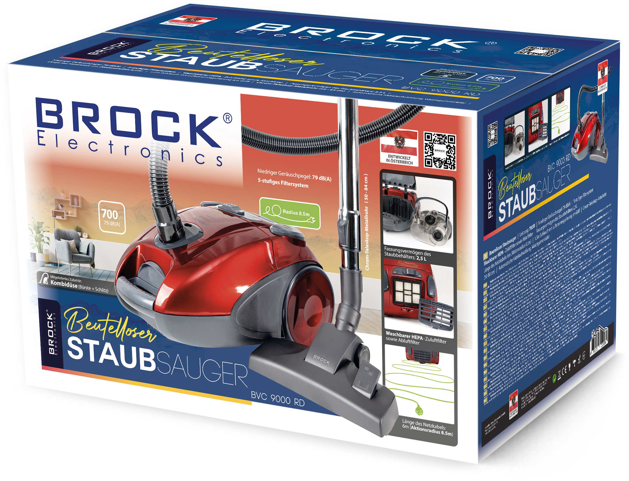 BROCK putekļu sūcējs bez maisa. Jauda: 700 W. Zems trokšņa līmenis.