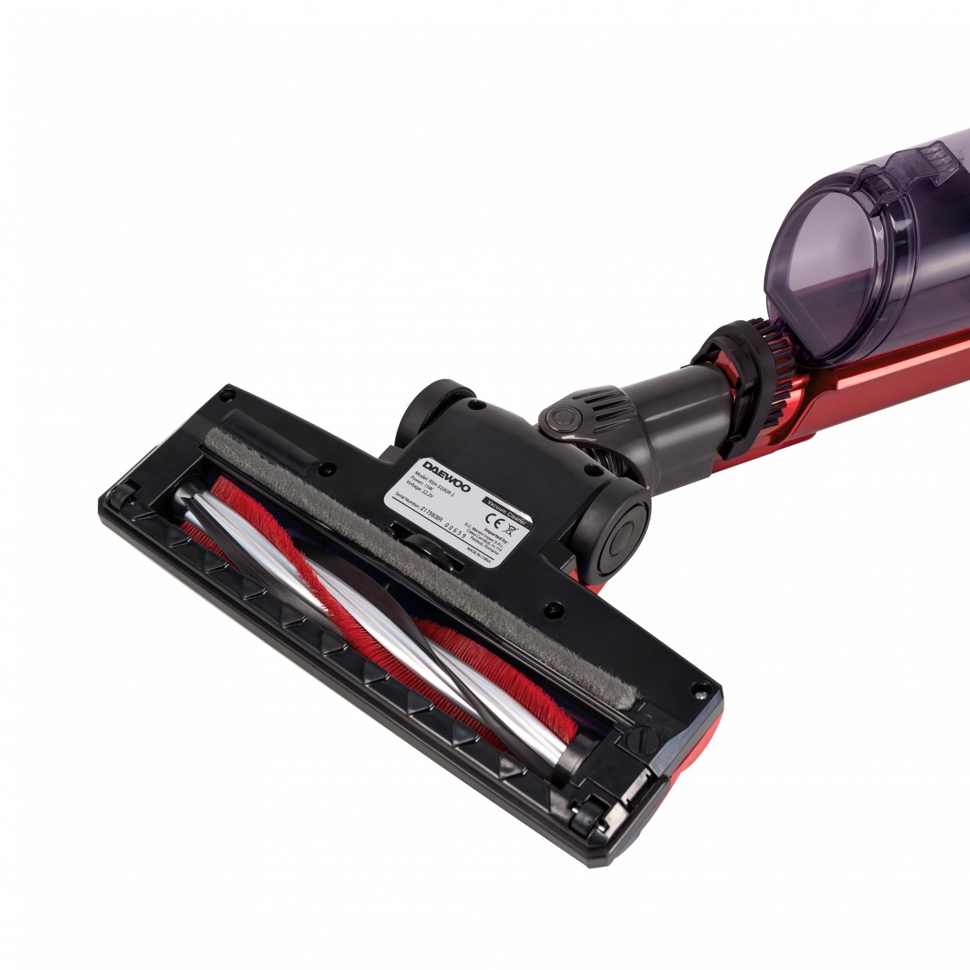 Daewoo RSH 310GR 1 vertikālais putekļsūcējs ar 130 W jaudu, 0,6 L putekļu tvertni un HEPA filtru, aprīkots ar izturīgu, noņemamu litija jonu akumulatoru, kas nodrošina līdz 30 minūtēm darbības, sarkanā krāsā. Tas nodrošina spēcīgu sūkšanas veiktspēju un ir aprīkots ar viegli iztukšojamu putekļu tvertni un 2-in-1 motorizētu birsti efektīvai dažādu virsmu tīrīšanai.
