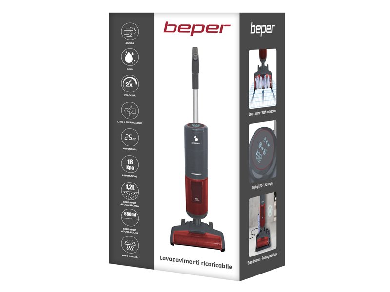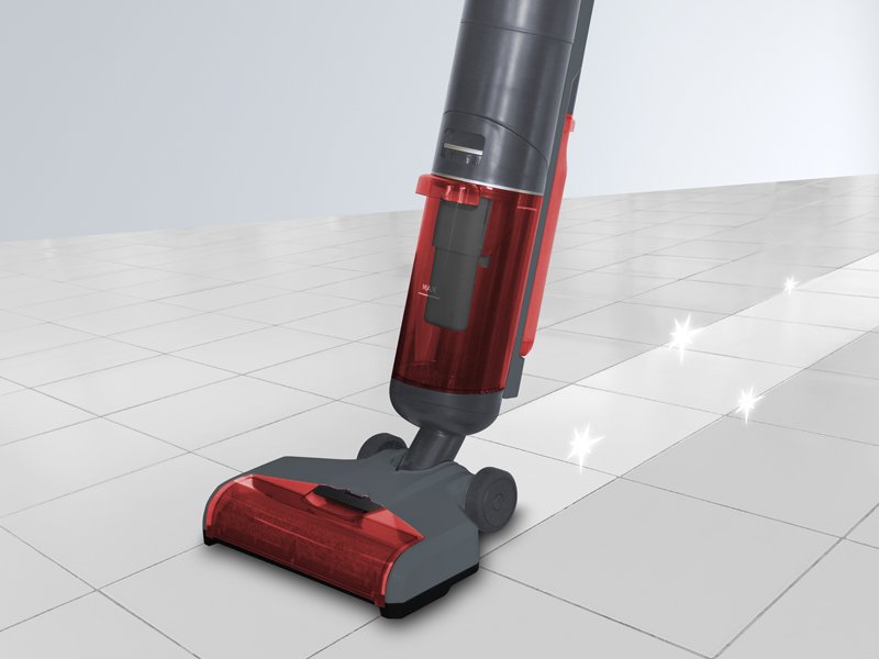 Uzlādējams putekļu sūcējs, lai viegli un ātri noņemtu jebkāda veida netīrumus no grīdas – gan šķidrus, gan cietus. Vienlaicīgi uzsūc un mazgā grīdas. Var lietot ar jebkuru grīdas mazgāšanas līdzekli, kas atšķaidīts ar ūdeni. Praktisks LED displejs ar atlikušā akumulatora uzlādes līmeņa indikāciju un 2 izvēles ātrumiem. Birstes rullis, lai savāktu netīrumus no grīdas un paklājiem. Aprīkots ar divām lielām tvertnēm: 1,2L netīrā ūdens tvertne, 680 ml tīra ūdens tvertne. Pašattīrīšanās funkcija rullīša automātiskai tīrīšanai.