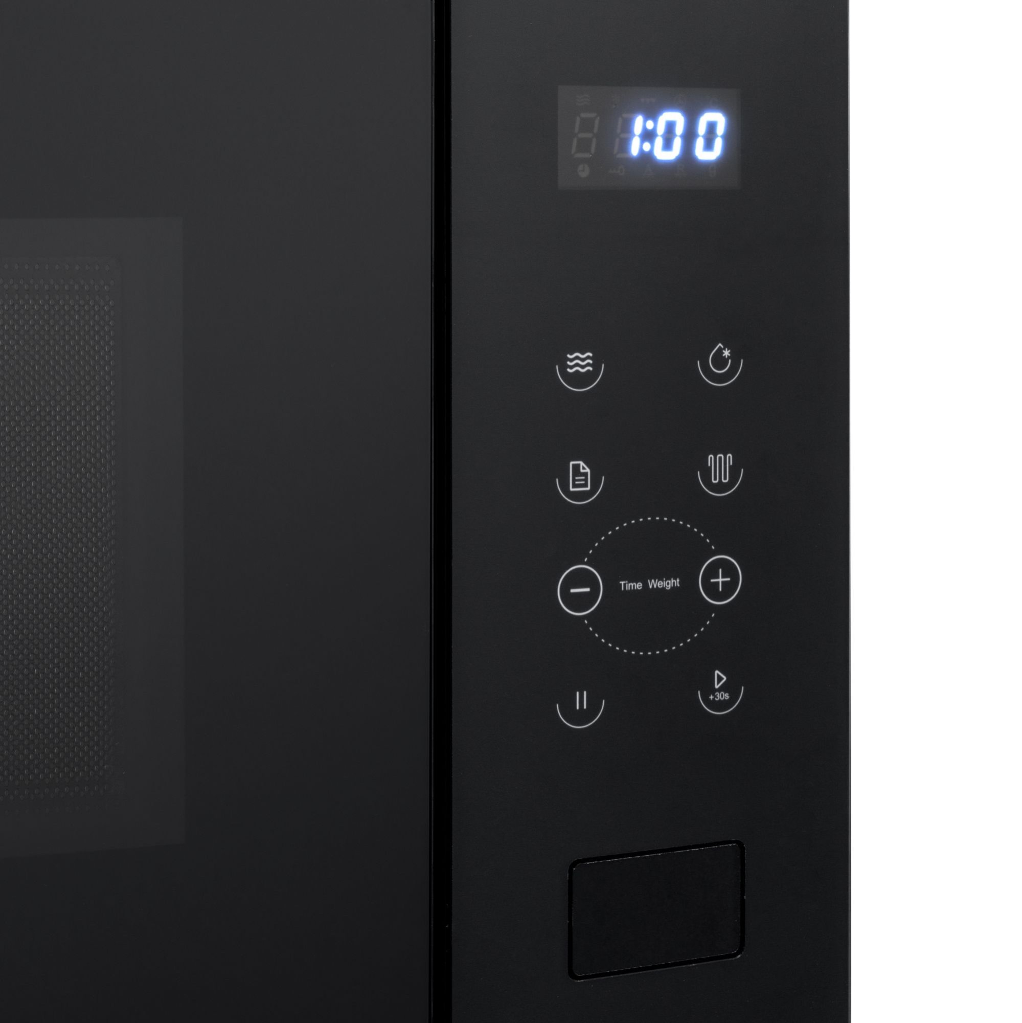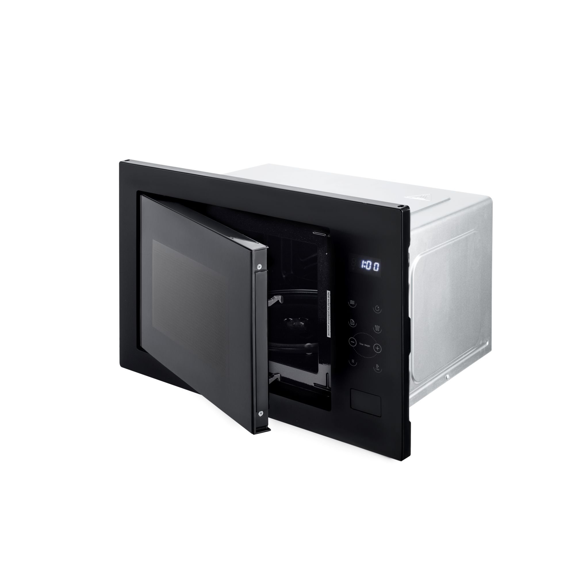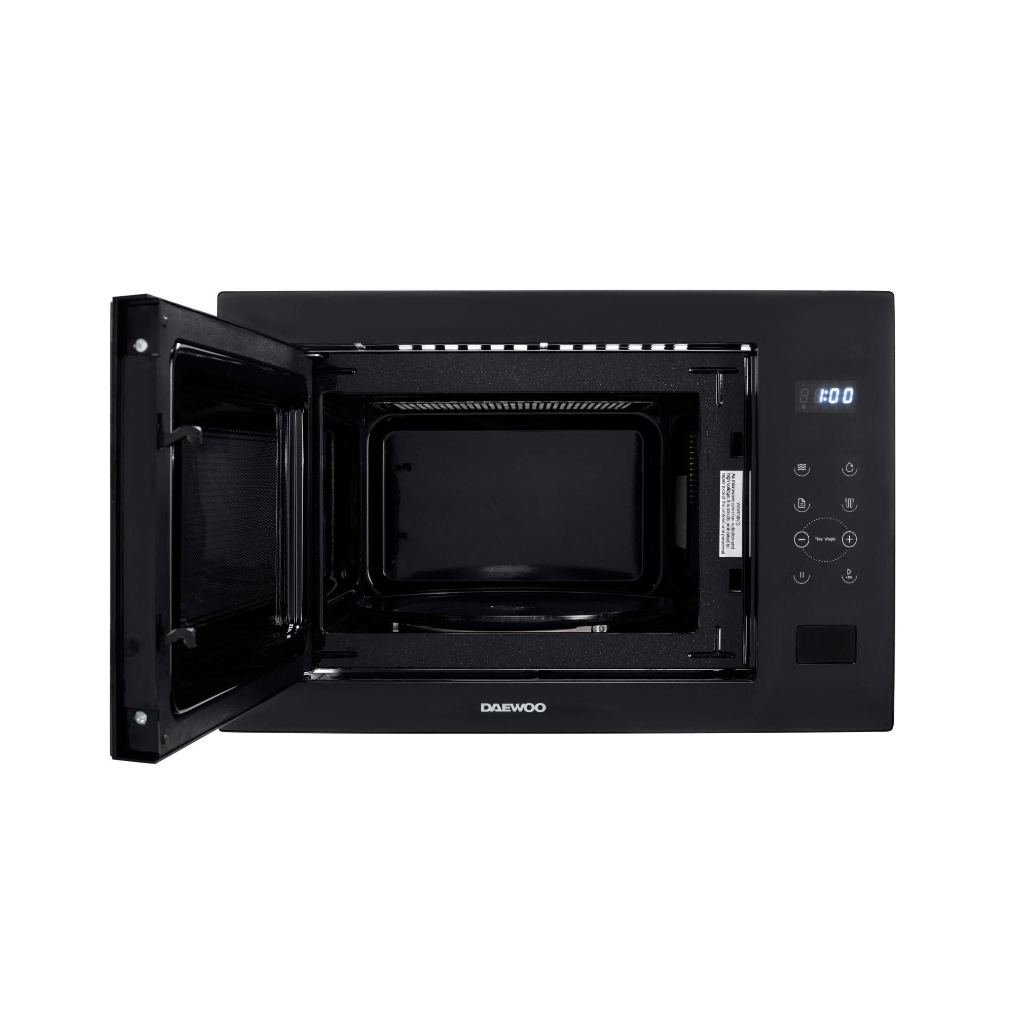 Iebūvējamā mikroviļņu krāsns Daewoo KOC 25GB2, 25 litri, 850 W, grils 1200 W, digitālā vadība, 8 iepriekš definētas programmas, vāks, aizsargs, šķīvja diametrs 315 mm, melna, atkausēšana pēc svara vai laika, tilpums 25 l, LED displejs, iepriekš definētās programmas: kartupeļi, makaroni, pica, popkorns, dārzeņi, dzērieni, gaļa, zivis, funkcijas: taimeris, atkausēšana, sildīšana, bērnu bloķēšanas sistēma, grils, skaņas signāls programmas beigās, izmēri 59,5 x 36,75 x 38,5 cm.